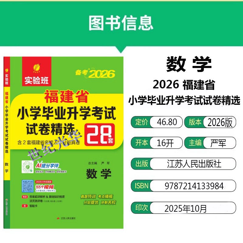 《实验班备考2026福建省小升初数学语文英语小学毕业升学考试试卷精选28套卷》是一本专为福建小升初学生准备的备考资料。该书由春雨教育出版,涵盖了福建省内各市2025小升初真题试卷,包括数学、语文、英语三门科目的升学考试试卷精选。适合六年级学生进行总复习,帮助学生在考前熟悉题型和难度,提升应试能力。此书是学生们备战小升初考试必备的复习资料。