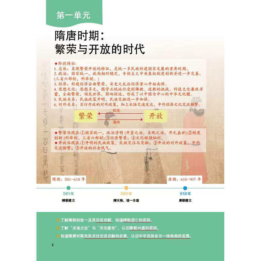 2026春人教版七年级下册《历史》新教材紧扣新课标理念,聚焦中华文明发展脉络,内容涵盖隋唐盛世、辽宋夏金元民族交融、明清统一多民族国家的巩固等关键时期。教材注重史料实证与历史解释,通过“史料阅读”“问题思考”等栏目引导学生探究历史本质。课堂笔记系统梳理每课核心知识点,突出重难点解析,辅以时间轴、知识结构图帮助学生构建体系。同时融入家国情怀与唯物史观教育,强化历史与现实的联系,提升学生时空观念与综合素养,是七年级学生高效学习、夯实基础的重要辅助资料。