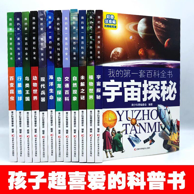 天猫彩图注音版儿童百科全书12册我的第一套百科少儿科普带拼音植物昆虫动物宇宙地球自然恐龙兵器鸟类小学6-7-8-9岁孩子喜欢的童书