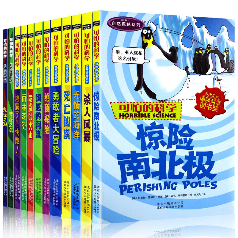 《可怕的科学自然探秘系列》全套12册,专为6-14岁少年儿童打造,是一套集知识性、趣味性与惊险性于一体的科普读物。该系列由北少出版社出版,内容涵盖南北极、海洋、沙漠、火山等极端自然环境,通过生动故事与科学知识结合,带领小读者探索地球最神秘、最危险的自然现象。书中语言风趣幽默,配以精美插图,既激发好奇心,又培养科学思维。适合小学三至六年级学生阅读,是中小学图书馆和家庭教育优选的百科全书式读物,让孩子在惊险探秘中轻松掌握自然科学知识,感受大自然的奇妙与威严。
