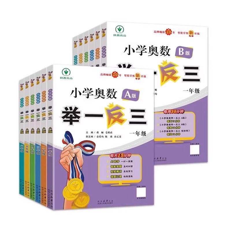 《小学奥数举一反三思维训练》A版、B版专为1-6年级学生设计,紧扣奥数核心知识点,注重思维拓展与解题技巧培养。A版以例题讲解为主,搭配同步练习,帮助学生理解思路;B版强化训练,提供进阶题型与综合测试,提升应用能力。涵盖计算、图形、应用题、逻辑推理等专项内容,结合奥赛真题与模拟卷,系统提升数学素养。每册分上下学期,难度循序渐进,适合课堂延伸与课外培优。教材编排科学,例题典型,练习分层,是小学生夯实基础、挑战奥数的优质教辅,助力学生在数学竞赛中脱颖而出。