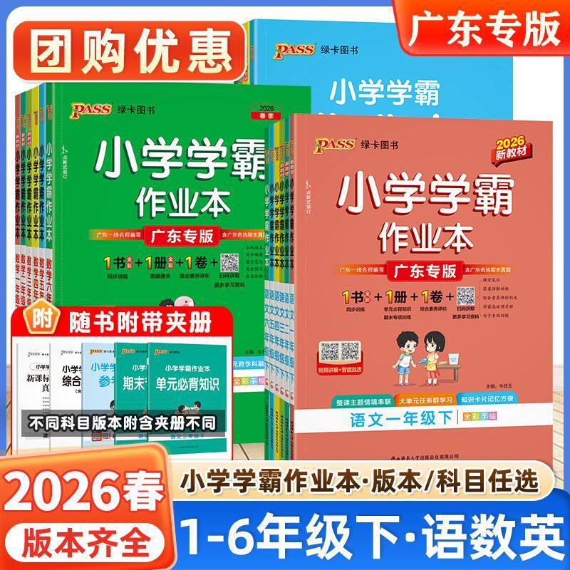 天2026春绿卡小学学霸作业本语文数学英语同步练习册一二三年级四五六上下册科学道德与法治人教版课本随堂课时天天训练PASS正版图书