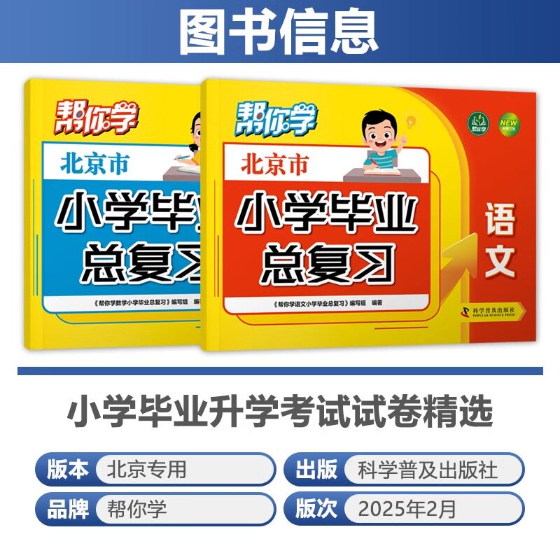 《2026帮你学北京小升初毕业总复习》专为北京地区小学升初中学生精心打造,涵盖语文、数学、英语三科,科目可任选。本书精选北京市历年小升初真题及分班考试真题,紧扣北京版教材大纲,题型全面、难度适中,帮助学生系统梳理知识点,掌握考试重点与答题技巧。同时配备多套高质量模拟试卷,强化实战训练,提升应试能力。内容编排科学,讲练结合,适合毕业总复习及分班备考使用。无论是夯实基础还是冲刺提分,本书都是北京小升初学子的理想复习资料,助力考生从容应对升学挑战,顺利迈入理想中学。
