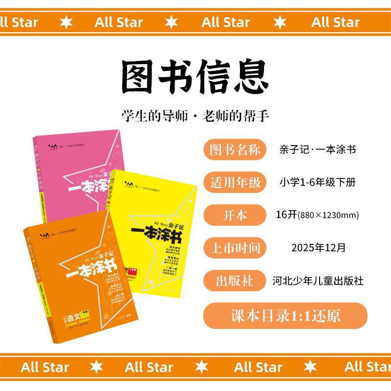 《2026学年小学一本涂书亲子记》是一套专为1-6年级学生设计的人教部编版(RJ)同步教辅丛书,涵盖语文、数学、英语全学科,分上册、下册配套使用。本书以“亲子共学”为核心理念,融合知识点解析、重点梳理、真题练习与学霸笔记,帮助孩子夯实基础、提升能力。内容紧扣课本,结构清晰,例题典型,解析详尽,便于家长辅导与学生自主学习。同时融入趣味涂画与互动设计,激发学习兴趣,培养良好学习习惯。适合小学生课前预习、课后复习及阶段性检测,是提升学业成绩的理想辅助工具,助力孩子轻松掌握知识要点,稳步迈向学霸之路。