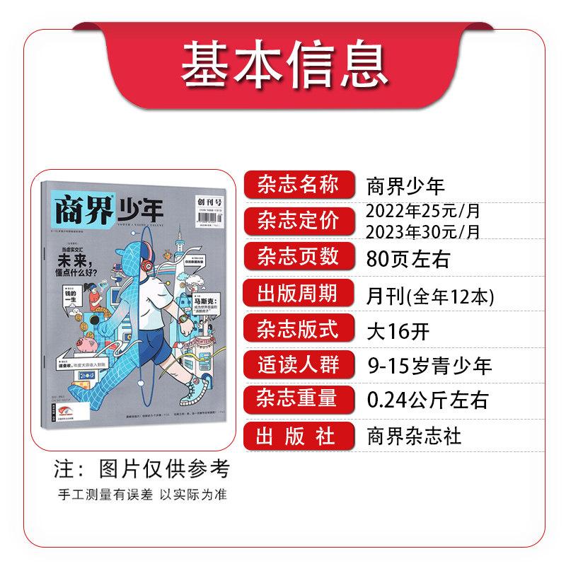 《商界少年》杂志专为青少年打造,致力于财商启蒙与商业思维培养。2025年全年及2026年1–3月刊聚焦青少年成长需求,通过生动案例、趣味故事和实用知识,引导孩子理解金钱、消费、储蓄与投资的基本概念,激发创新意识与创业精神。内容涵盖经济常识、企业管理、社会热点及全球视野,语言通俗易懂,兼顾趣味性与启发性。每期设有互动栏目,鼓励青少年思考现实问题,提升决策力与责任感。作为家庭与学校财商教育的重要补充,《商界少年》助力青少年建立健康的财富观,培养面向未来的商业头脑与综合素养,是陪伴孩子智慧成长的优质期刊。