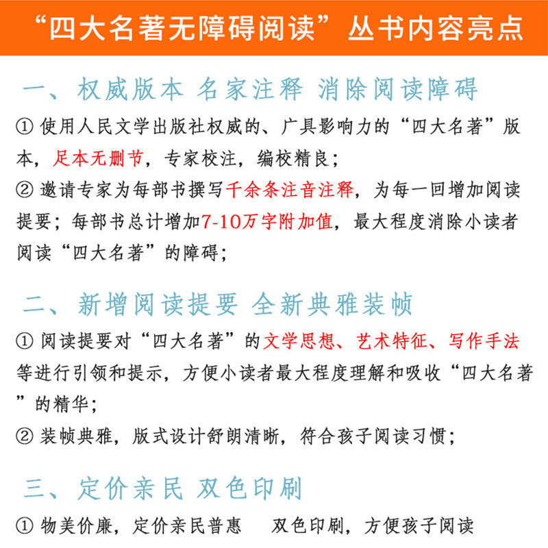 天猫西游记红楼梦三国演义水浒传四大名著无障碍阅读原著无删减人民文学天天孙大海导读白话文注释小学生初中生课外书青少年珍藏礼品