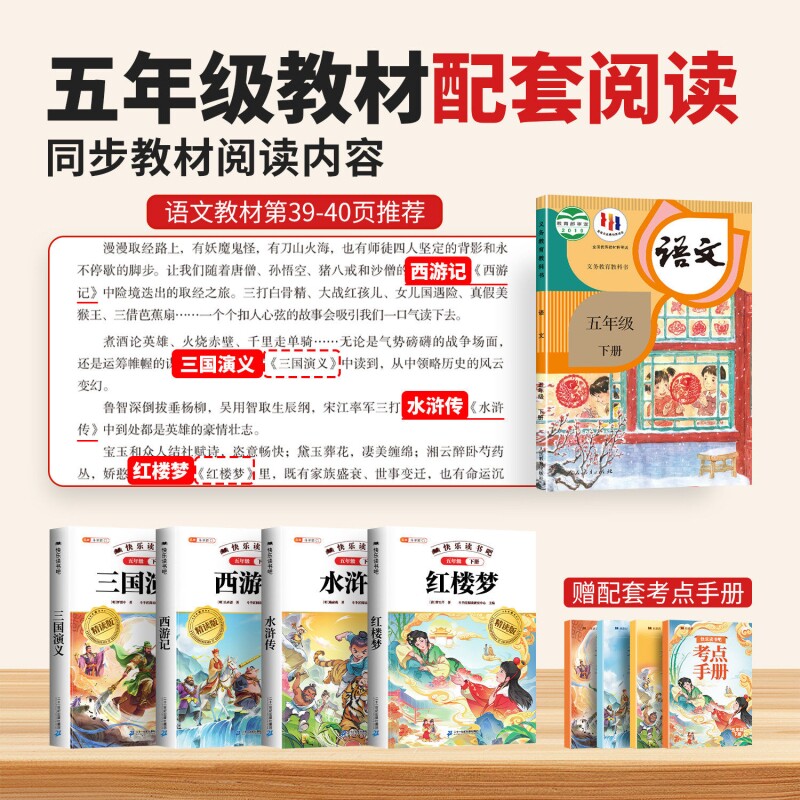 天猫2026年四大名著原著正版小学生版五年级下册必读的课外书快乐读书吧5下西游记红楼梦水浒传三国演义儿童绘本读物青少年三国志清朝