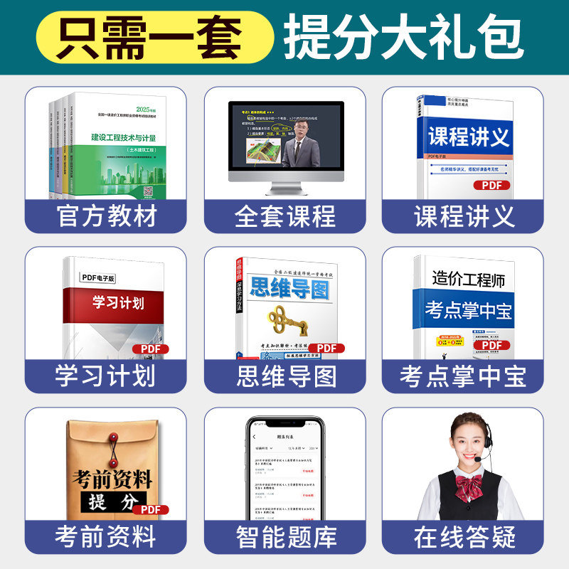 2025年一级造价工程师考试官方教材全套涵盖土建、安装、交通三大专业方向,由权威机构编写,紧扣最新考试大纲,内容全面、重点突出。配套2026年网络课程及随堂讲义,系统讲解核心知识点,助力高效备考。精选历年真题与高质量模拟试卷,帮助考生熟悉题型、掌握答题技巧。特别强化《建设工程造价案例分析》与《建设工程计价》科目的专项训练,提升实际应用能力。习题集分类清晰、解析详尽,适合不同阶段复习使用。本套资料集教材、课程、真题、练习于一体,是2025年一级造价师考生通关的理想选择,助力科学备考、一次取证。