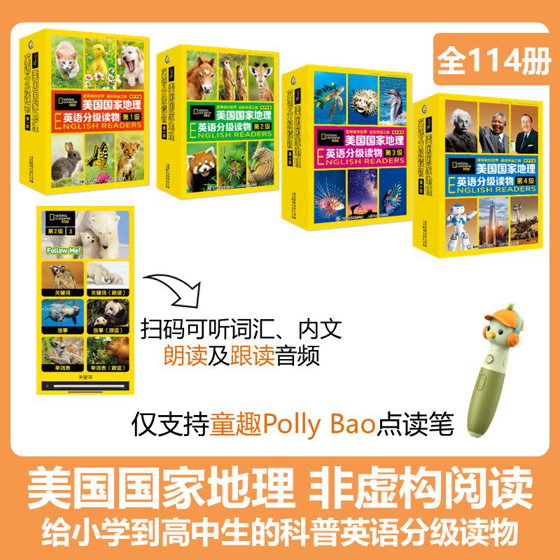 天猫美国国家地理英语分级读物 第1234级系列 小学生儿童英语分级阅读第一级ket单词训练营点读笔英语词汇语法通用初中科普