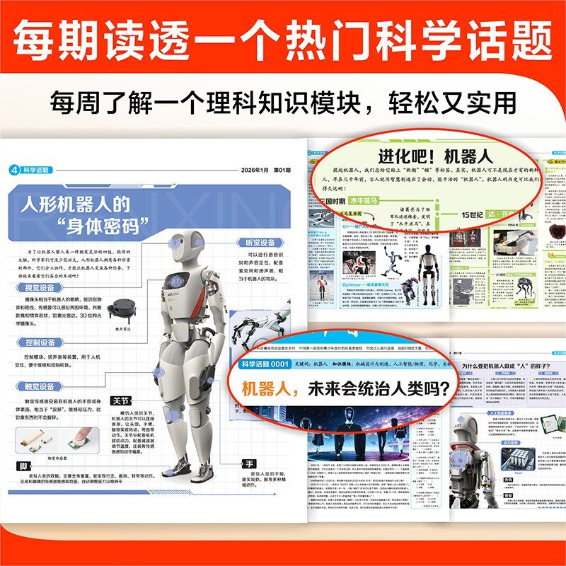 2026春季新刊(1-3月现货)《天星少年科普报·科学知识画报》专为8-15岁小学生打造,共52期,是一份融合新课标理念、聚焦科学素养的课外阅读佳品。内容涵盖天文、地理、生物、物理、科技前沿等多元领域,以图文并茂、通俗易懂的方式呈现科学知识,激发孩子探索兴趣。每期围绕热点科学话题展开,兼具趣味性与知识性,助力提升综合素养与思维能力。作为权威出版的百科全书式科普报纸,它不仅是课堂学习的延伸,更是培养未来科学人才的优质读物,适合家庭订阅,陪伴孩子快乐成长、开阔视野。