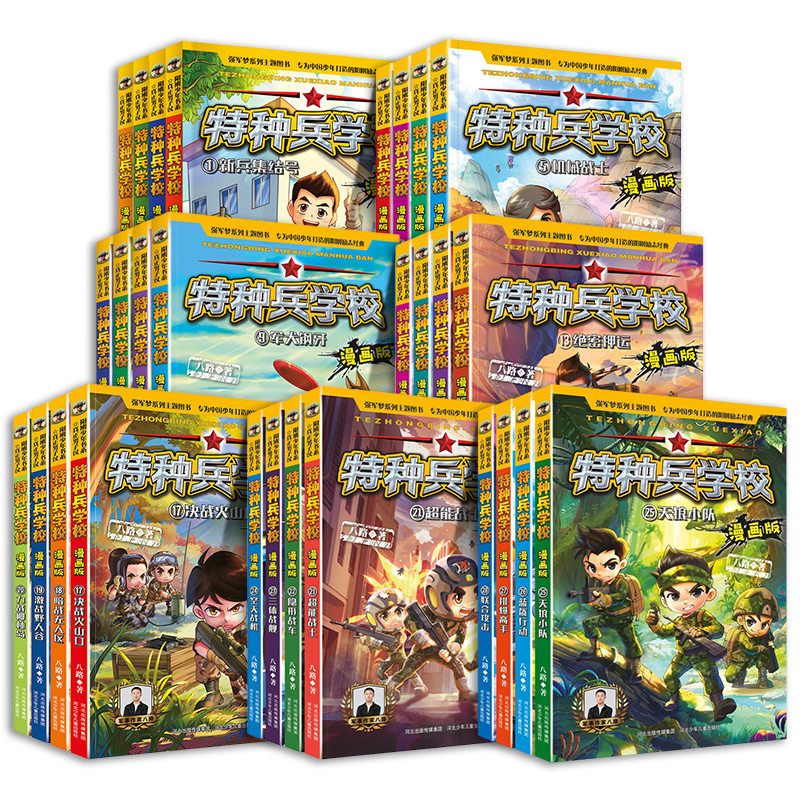 《特种兵学校》漫画版全套28册(1-7辑)是专为小学生打造的少儿军事科普励志读物,由“八路”系列作者倾力创作。本书以生动有趣的漫画形式,讲述少年特种兵在军营中磨砺意志、团结协作、勇敢追梦的成长故事。内容融合真实军事知识、战术训练与校园生活,兼具趣味性与教育性,激发孩子的爱国情怀与责任感。适合小学一至六年级学生课外阅读,帮助他们在轻松阅读中培养坚韧品格、团队精神和独立能力。正版授权,品质保障,是孩子成长路上的良师益友,深受家长与师生推荐。