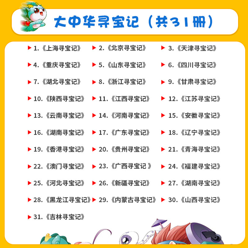 《大中华寻宝记》是一套专为6-12岁小学生打造的趣味科普漫画丛书,全套共31册,涵盖全国各省市自治区,如吉林、新疆、黑龙江、湖南、湖北、上海、北京、天津、四川、重庆、安徽等地。每册以生动有趣的漫画形式,结合紧张刺激的寻宝冒险故事,带领孩子穿越祖国大好河山,了解各地的地理风貌、历史文化、风土人情和特色物产。内容兼具知识性与趣味性,是孩子们学习地理、历史、民俗的优质课外读物。正版图书印刷清晰,图文并茂,寓教于乐,激发孩子探索中华文化的兴趣,培养爱国情怀与求知精神,深受家长与孩子喜爱。