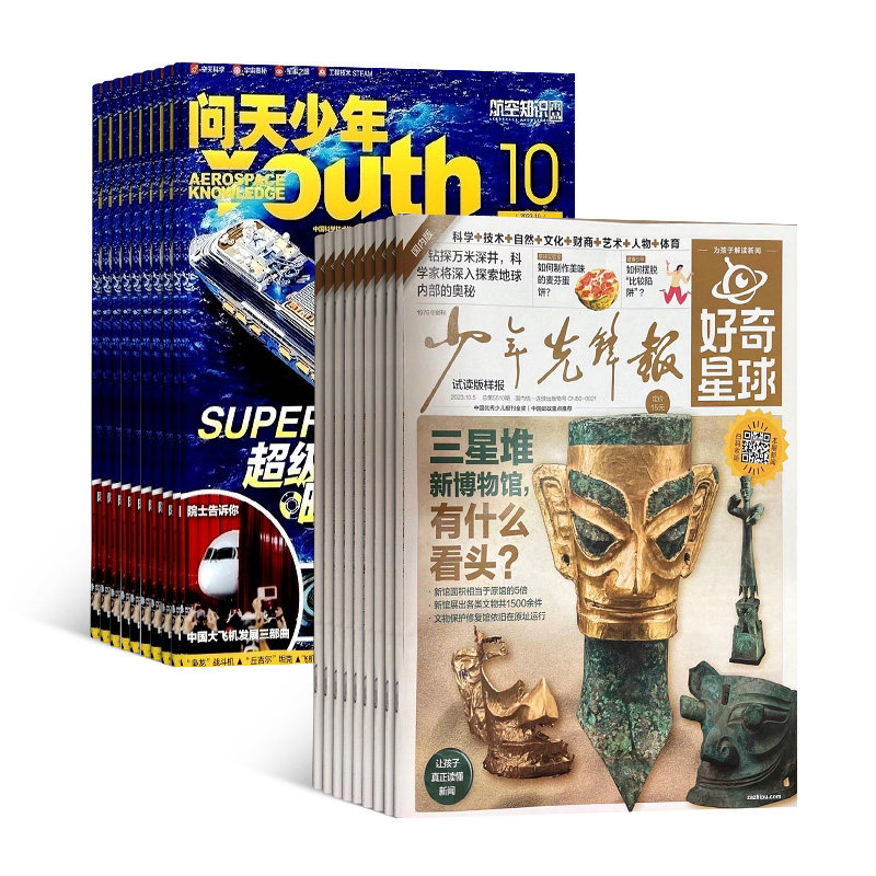 天猫好奇星球+问天少年杂志组合订阅 2026年1月起订 1年共36期 学生解释性新闻 知识与趣味的少儿报纸 航空航天 杂志铺