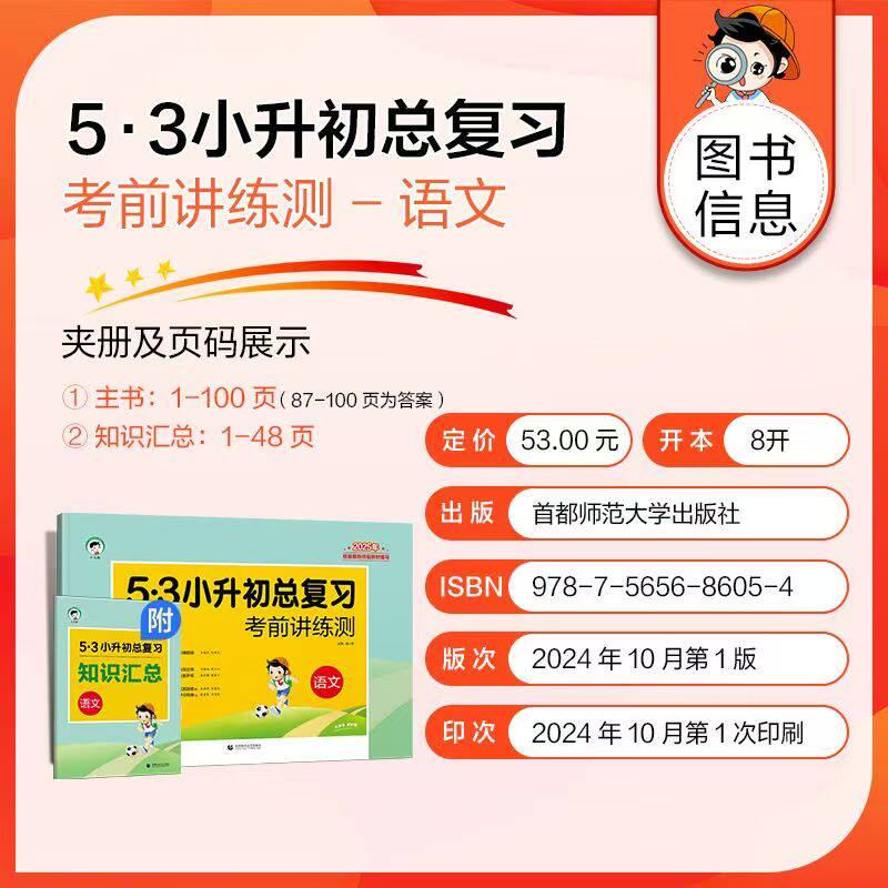 2025版《53小升初总复习资料》专为六年级下册学生设计,涵盖语文、数学、英语三科,适配人教版、苏教版、北师大版教材。试卷紧扣小学毕业考试考点,精选典型题型,系统梳理知识要点,帮助学生高效查漏补缺。每套试卷均配有详细答案解析,便于学生理解解题思路,提升应试能力。内容编排科学,难度梯度合理,既巩固基础,又强化综合运用。是小学毕业冲刺阶段不可或缺的刷题利器,助力学生在小升初考试中取得优异成绩。