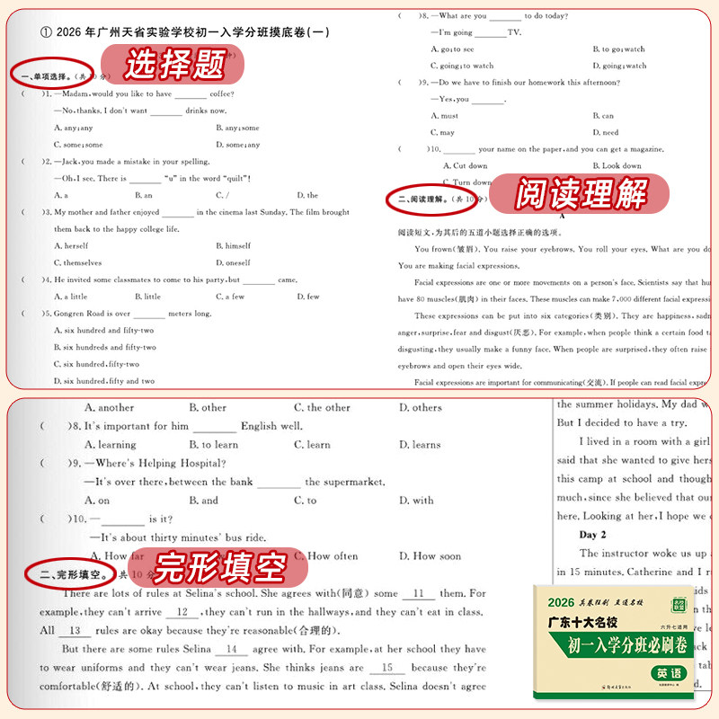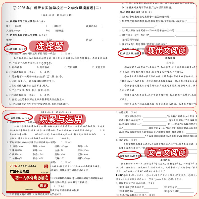 天猫广东十大名校初一入学分班必刷卷重点初中招生摸底真题卷小升初总复习资料六年级下升七年级语文数学英语期末考试卷人教版专项训练