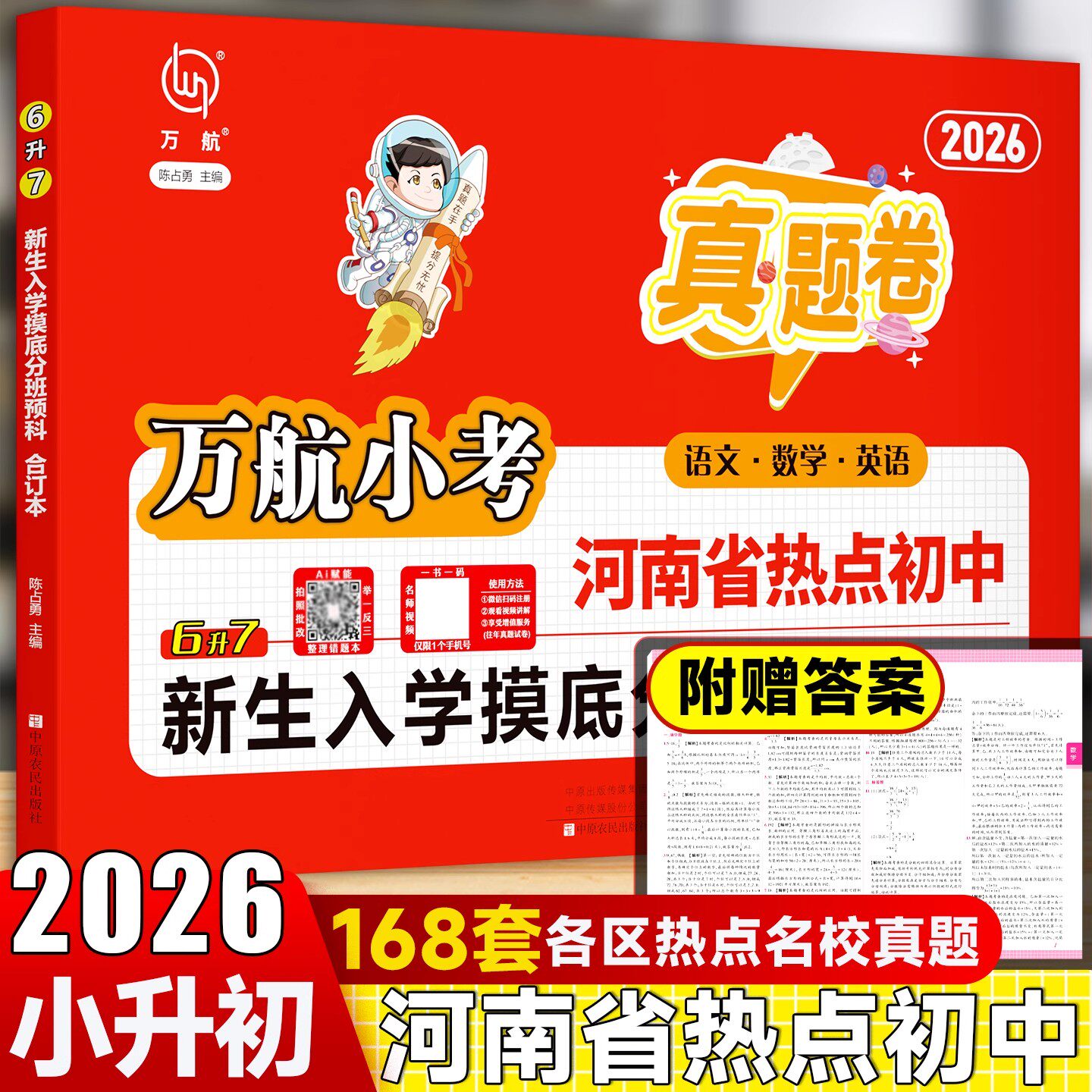 《2026万航小考郑州小升初暗考真题卷》专为六年级升七年级新生设计,精选河南热点初中历年入学摸底分班真题,涵盖语文、数学、英语三科,紧扣郑州小升初考试趋势与命题方向。试卷内容真实还原“暗考”题型与难度,帮助学生提前适应初中选拔节奏,精准查漏补缺。汇编真题源自郑州外国语、省实验等名校内部测试,具有高度权威性与实战性。配套详细解析,助力学生高效备考,提升应试能力,是升学衔接、分班冲刺的优质资料,为顺利进入理想初中奠定坚实基础。