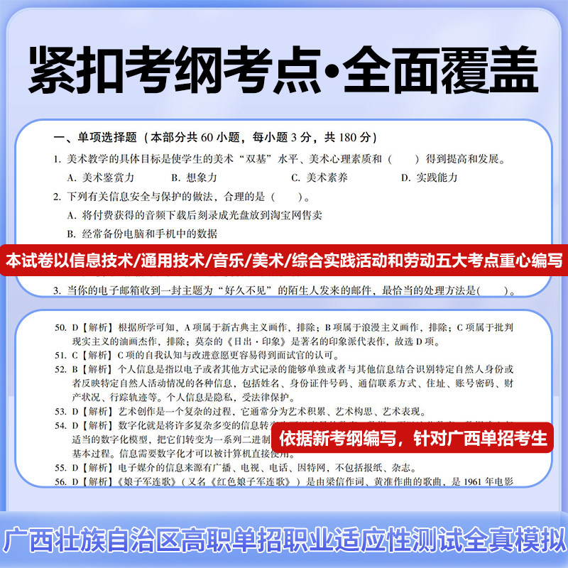 天猫2026版广西省高职单招复习资料综合素质职业适应性测试专项题库高等院校单招考试音乐美术信息技术+通用技术综合实践劳动