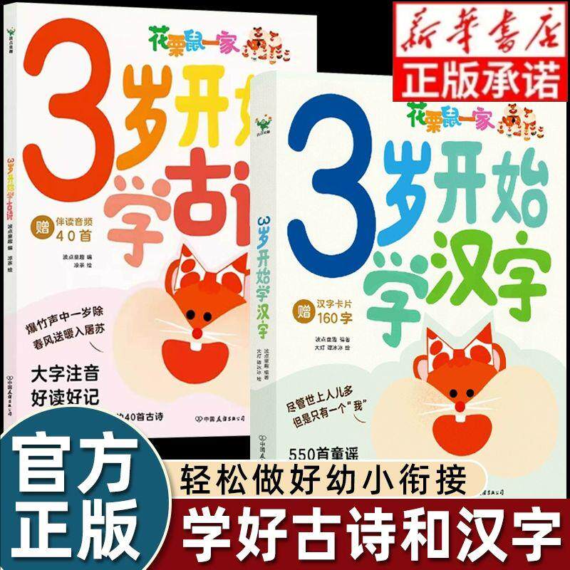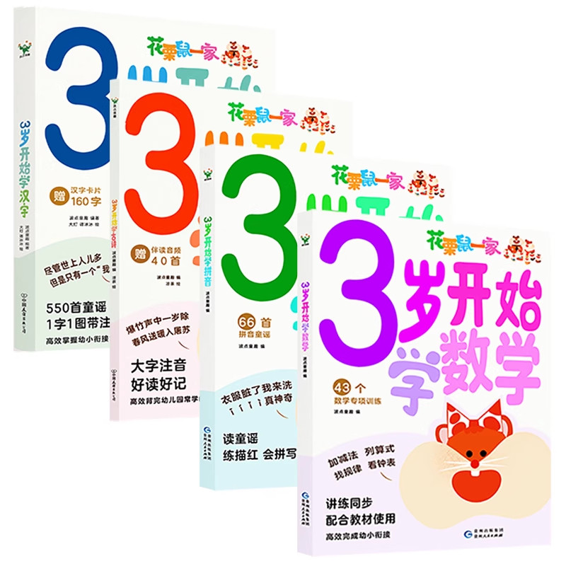 天猫【正版】3岁开始学古诗+3岁开始学汉字 3岁开始学数学+拼音 高效背完幼儿园常学的40首古诗掌握幼小衔接常用600字国学识字少儿启蒙