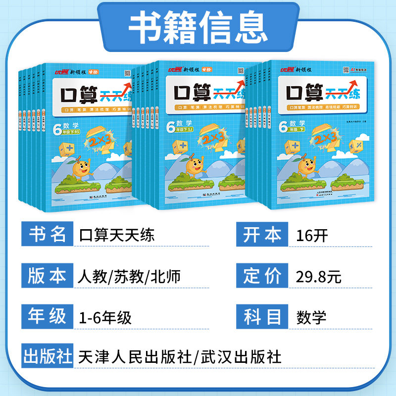 《甘橙口算天天练》2026春季版专为小学一至六年级学生设计,紧扣人教版、北师大版等主流数学教材,按学期分册编排,涵盖上下册内容。本书聚焦口算、笔算核心能力,系统设置横式、竖式、脱式等多种题型,强化计算技巧与数学思维训练。每日一练,题量适中,难度梯度合理,帮助学生夯实基础、提升运算速度与准确率。题型丰富多样,注重实际应用与思维拓展,配套同步知识点,便于课后巩固与复习。适合课堂练习、家庭作业及假期提升使用,是小学生数学计算能力提升的高效辅助工具。