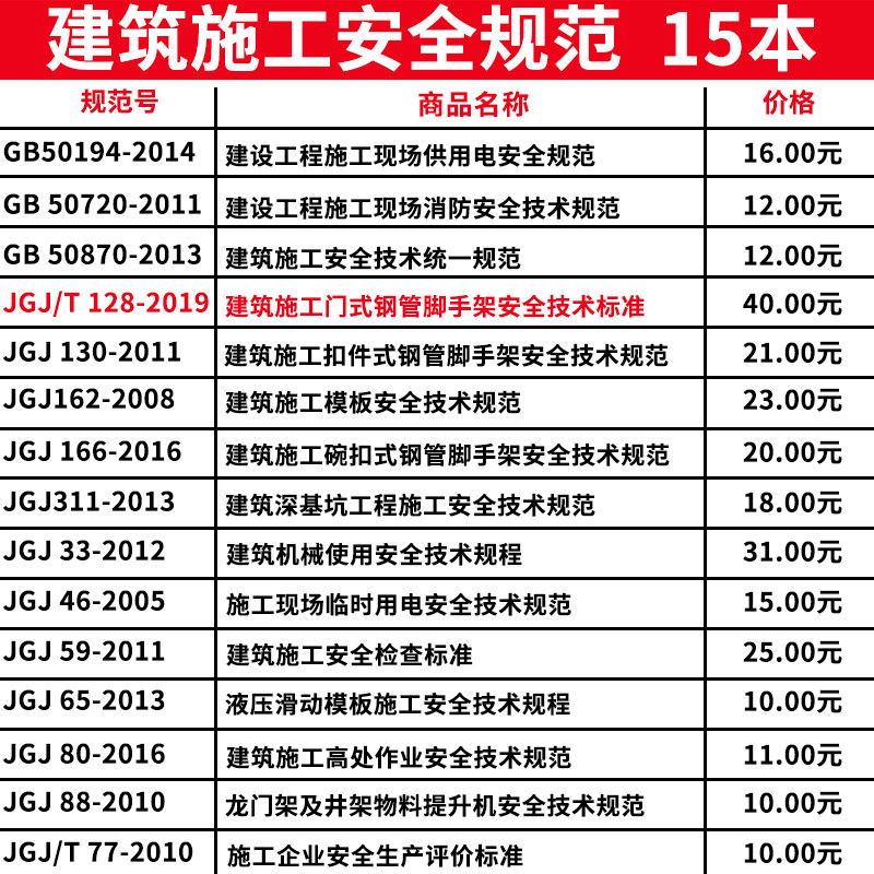 天猫标准规范【全15册】常用建设工程建筑施工安全技术统一规范标准管理JGJ59安全检查标准JGJ128 JGJ130脚手架JGJ162模板安全GB50870