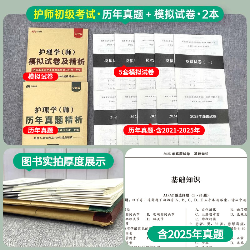 2026年备考初级护师军医版资格证考试用书,专为护理学师初级考生精心打造,涵盖近25年历年真题,全面还原考试重点与命题趋势。本书整合权威教材核心考点,配套高质量试题题库与模拟试卷,题型丰富、解析详尽,助力考生高效掌握知识要点。便携版“随身记”设计,便于随时随地复习,轻松突破难点。军医版内容严谨、贴近临床,结合最新考纲,是护资考生冲刺通关的得力助手。全套教材系统性强,讲练结合,帮助考生在短时间内夯实基础、提升应试能力,顺利通过初级护师资格考试。