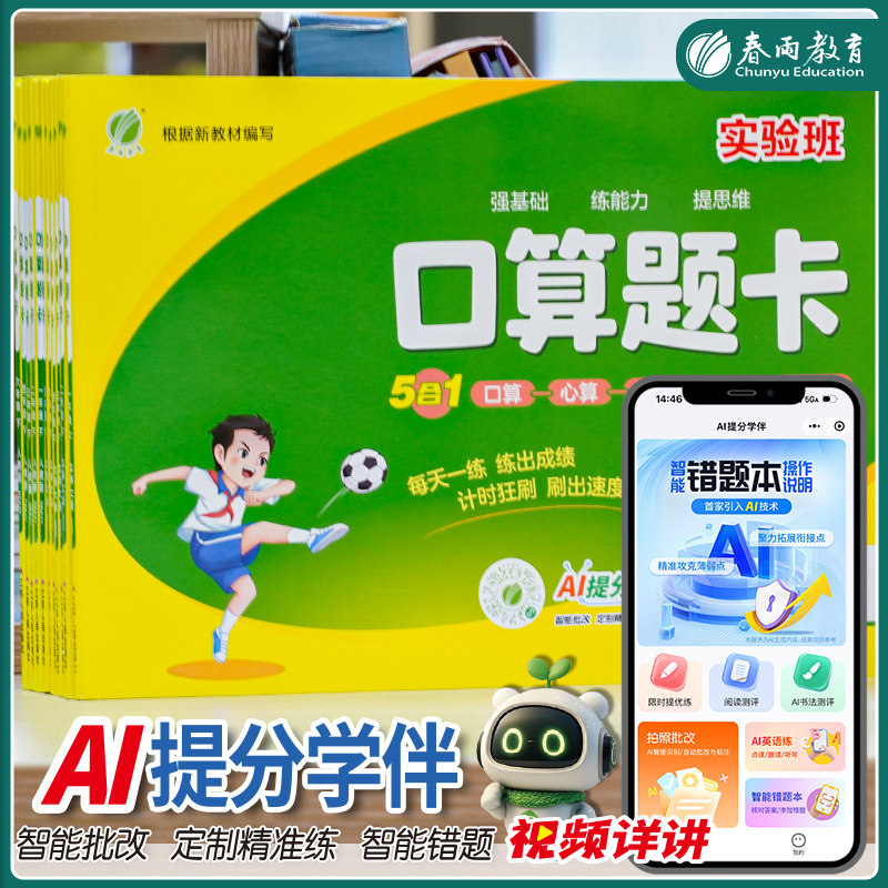 2026新版《实验班口算题卡》系列,紧扣人教版小学数学教材,涵盖一至六年级上册内容,专为提升学生计算能力与数学思维设计。本系列包含口算、竖式计算、应用题专项训练,聚焦易错题型,通过“天天练”模式强化基础,巩固知识点。题目编排由易到难,注重思维拓展与综合运用,帮助学生掌握加减法核心技能,提升解题速度与准确率。同步教材进度,适合课堂巩固与课后练习,是学生夯实计算基础、突破薄弱环节的理想教辅工具,助力数学能力全面提升。