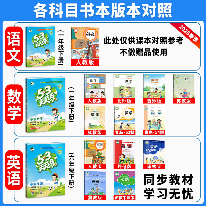 《53天天练》是一套与小学一至六年级语文、数学、英语教材同步的练习册,涵盖人教版、北师大版、西师版、苏教版、外研版等多个主流版本,适合不同地区学生使用。丛书按课时编排,一课一练,紧扣教材知识点,题型丰富,难易适中,注重基础巩固与能力提升。上册下册均配有单元测试卷和期末复习卷,帮助学生及时查漏补缺,夯实基础。每道题配有详细解析,便于学生自学和家长辅导。通过每日坚持练习,有效提升学习效率,培养良好学习习惯,是小学生课后练习、巩固知识的优质教辅材料。