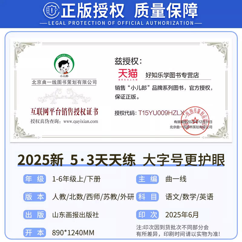 天猫53天天练一二三四五六年级上册下册语文数学英语人教版上北师大西师苏教外研版五三天天练教材同步训练习题册小学5.3试卷一课一练