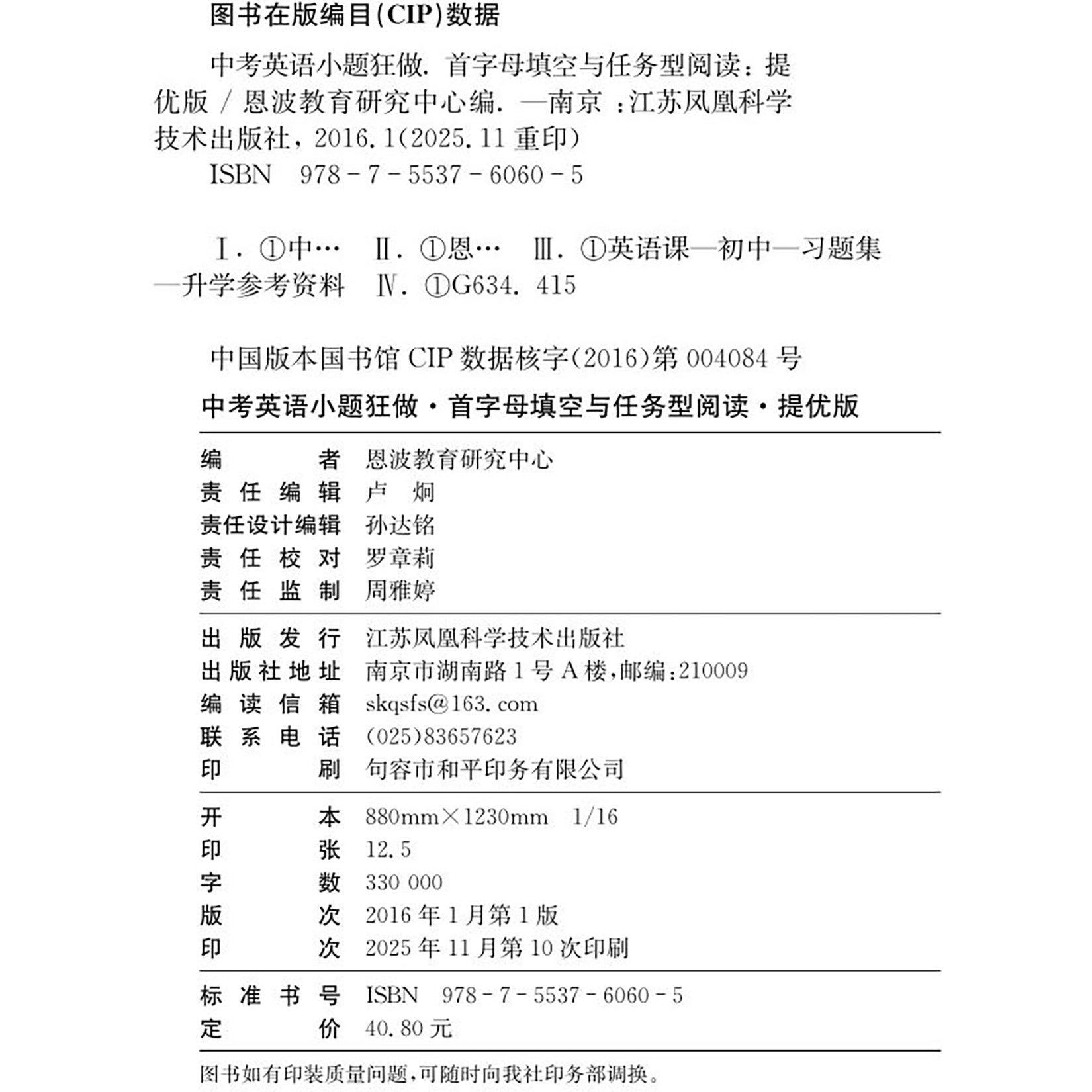 淘宝2026新版提优版小题狂做中考英语首字母填空与任务型阅读锁定拉分题型攻克高分壁垒江苏凤凰科学技术出版社