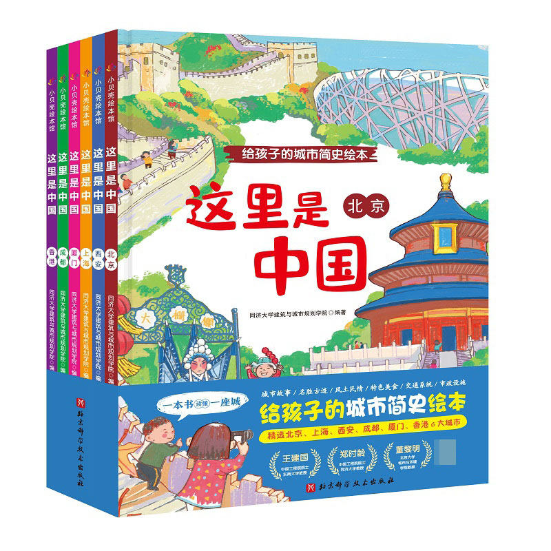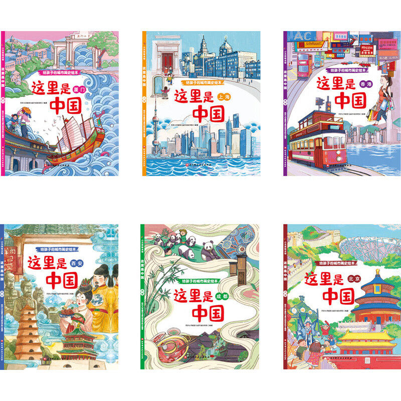 这是一套专为儿童打造的中国城市简史绘本,共6册精装硬壳图画书,涵盖北京、上海、西安、成都、厦门、香港六大代表性城市。由同济大学团队精心编撰,北京科学技术出版社出版,融合历史、地理与文化知识,以生动图画与简洁文字讲述每座城市的起源、发展与独特风貌。内容深入浅出,适合居家亲子共读,帮助孩子从小建立对祖国城市的认知与热爱。装帧精美,印刷考究,既是优质儿童读物,也是值得收藏的文化启蒙礼品书,引领孩子用童真的眼光探索中华城市的千年故事。