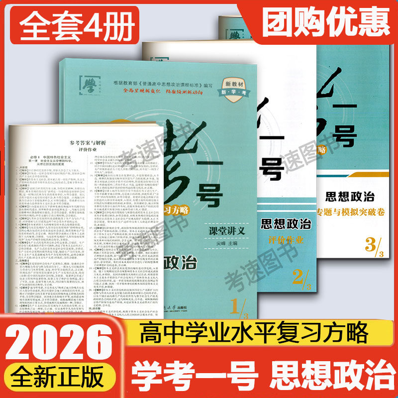 《2026浙江省高中学业水平复习方略·学考一号》是一套专为浙江高一、高二学生学考及高考复习打造的高效教辅丛书,涵盖语文、数学、物理、化学、生物、地理、历史、政治、通用技术及信息技术等全科学考科目。丛书紧扣最新课标与学考大纲,系统梳理核心知识点,精选典型例题,强化解题技巧,注重基础巩固与能力提升并重。通过“课堂精讲+专项突破+模拟测试”三位一体模式,帮助学生夯实基础、突破难点、提升应试能力。内容编排科学,题型贴近真题,是浙江学子备战学考、冲刺高分的权威复习指南。