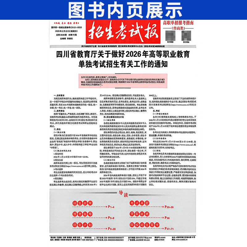 【普高类/中职类】2026年招生考试报普通高校高职教育单独招生报考指南 四川院校高职单招直通车志愿填报语文数学英语信息通用技术