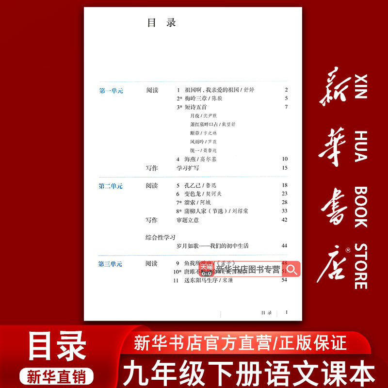 本商品为新华书店正版销售的初中九年级上册和下册语文教材,采用人教版,即部编版。适用于初三学生的学习使用。这套教材包含上册和下册两本书,涵盖了九年级语文所需的知识点和技能点,是学生进行语文学习的重要资料。教材内容丰富,质量优良,是学生备考和提高语文水平的重要参考。购买此商品可以获得正版、高质量的教材,有助于学生的学习进步。