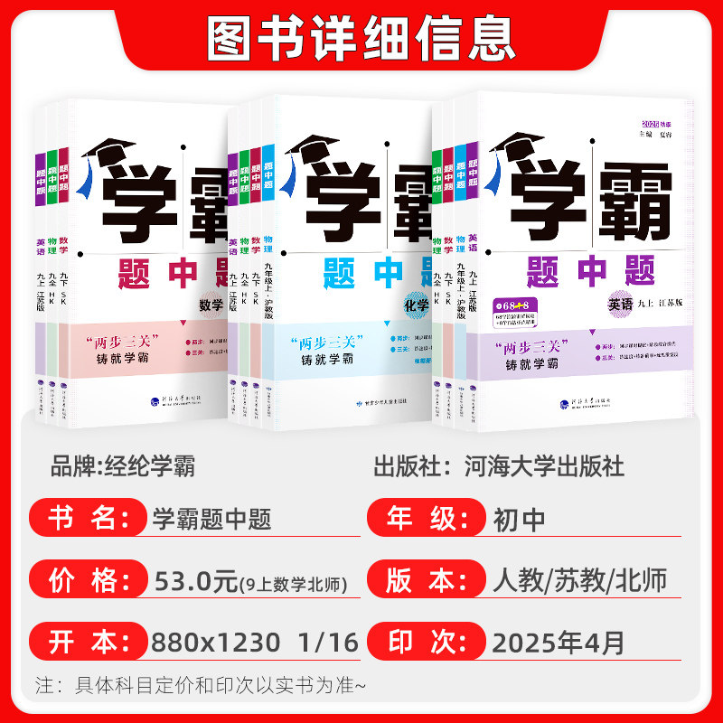 天猫2025版学霸题中题提七八九年级上册下册数学英语物理化学人教苏教江苏版789教材课本配套练习册学霸题中提初一初二初三辅导资料