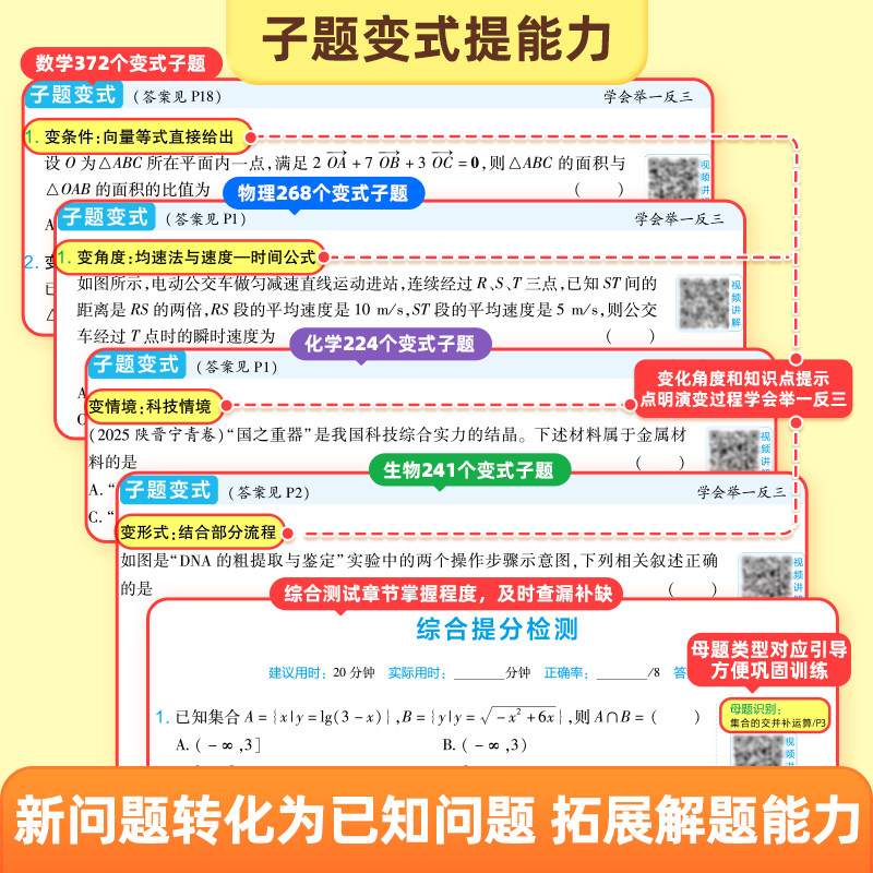 《2026作业帮高中数学母题大全》系列图书,涵盖物理、化学、生物等学科,紧扣高考考纲,精选历年真题与高频母题,系统梳理常考题型与核心知识点。书中提供高效解题技巧与标准化答题模板,帮助学生快速掌握解题思路,提升应试能力。每道母题均配有详细解析与变式训练,强化知识迁移与应用。专设“直击高考”模块,聚焦命题趋势,助力考生精准突破重难点。由作业帮旗舰店权威出品,内容科学、结构清晰,是高中生一轮复习与冲刺备考的优质教辅,助力学子高效刷题、稳拿高分。