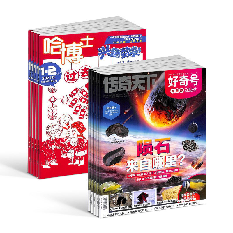 天猫包邮 哈博士兴趣数学3-6年级+好奇号杂志组合 2026年1月起订1年共24期全年订阅 6-12岁小学生高品质阅读自然科普杂志铺