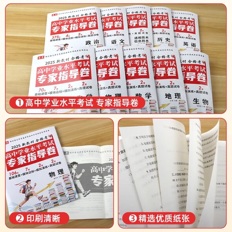 天猫2025版高中学业水平考试专家指导卷数学语文英语物理化学生物政治历史信息技术新教材新课标仿真模拟卷试题汇编考前必刷题汇编详解