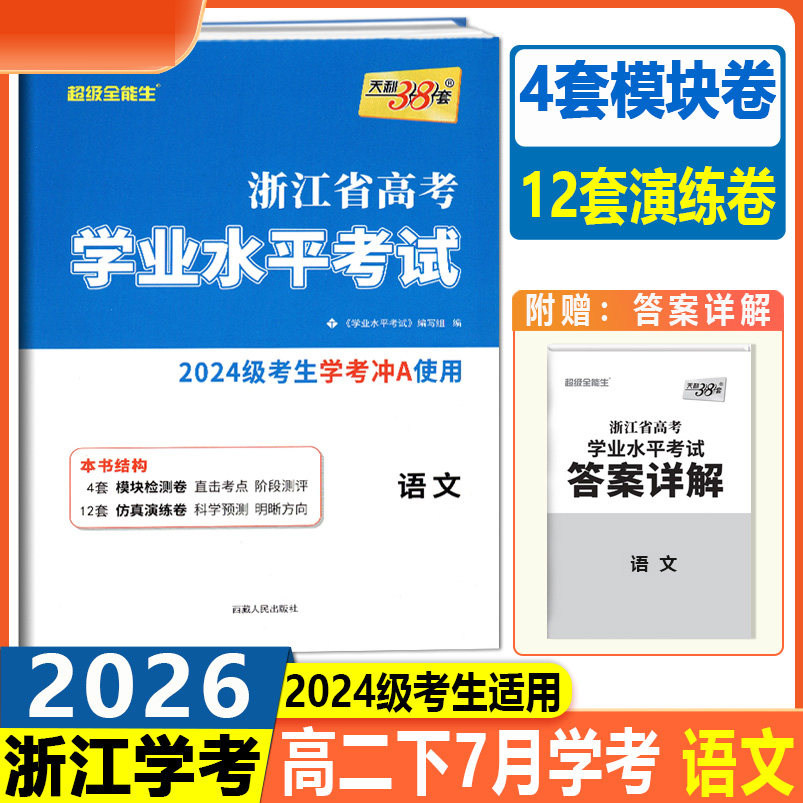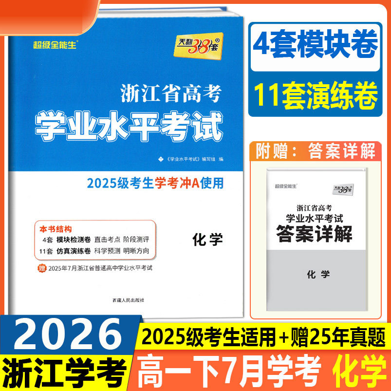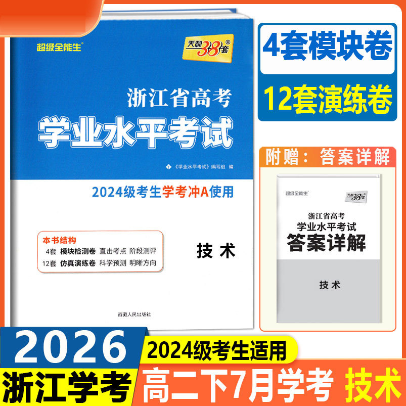 天猫2026浙江学考化学生物历史地理语文数学技术物理政治试卷 高一高二天利38套浙江省新高考学业水平考试学考试卷 学考浙江学考测试卷