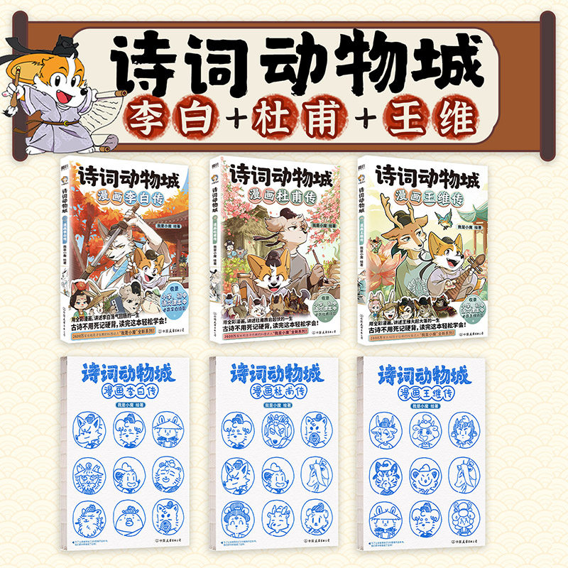 天猫【赠印签+闪卡+贴纸+诗词手册】诗词动物城 小魔漫画书杜甫+李白+王维传 小魔历险记漫画 明朝大航海科普漫画 漫画书籍