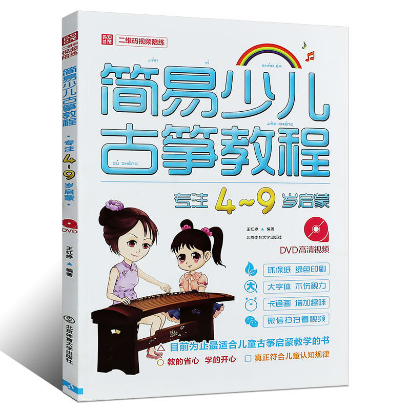 天猫正版简易少儿古筝教程 幼儿儿童古筝初学入门基础练习曲教材教程曲谱书籍 儿童古筝教学书 北京体育社 自学古筝曲集乐理知识琴谱书