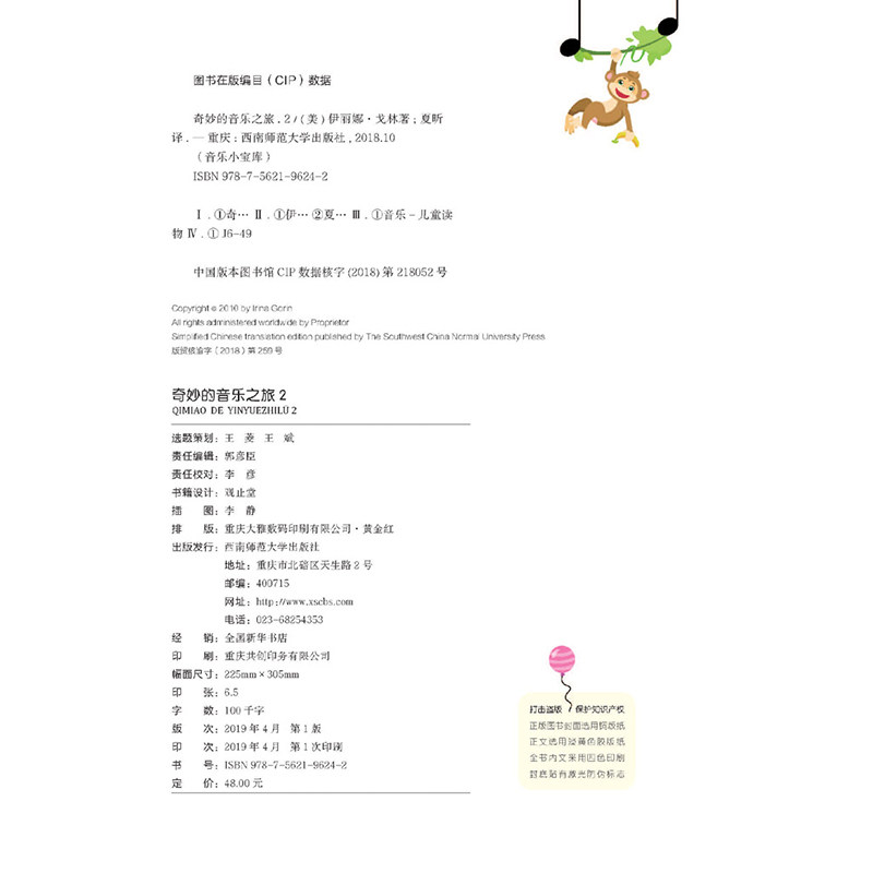 《奇妙的音乐之旅2》是一本专为幼儿及少儿初学者设计的钢琴启蒙与乐理入门绘本教材。通过生动有趣的图画、儿歌和互动游戏,将基础乐理知识(如音符、节奏、五线谱等)与钢琴弹奏技巧巧妙融合,让孩子在快乐中开启音乐之旅。教材内容由浅入深,注重趣味性与实践性,帮助3-8岁儿童建立音高感、节奏感和手眼协调能力。每课配有简单钢琴曲目,搭配朗朗上口的儿歌,激发学习兴趣。适合家庭亲子共学与幼儿园、琴行教学使用,是孩子迈入音乐世界的第一本理想启蒙书。