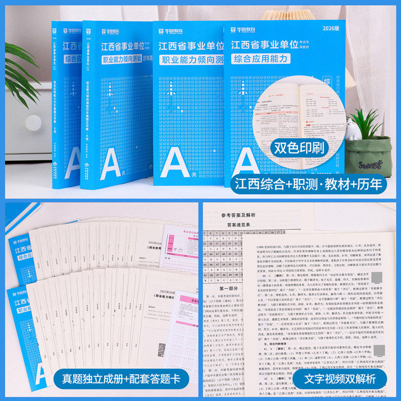 华图教育2026年江西省事业单位考试教材,专为综合管理A类及B、C、D、E类(含医疗卫生岗)考生精心编写,涵盖《职业能力倾向测验》与《综合应用能力》两大科目。教材紧扣江西省考纲,系统梳理考点,配套历年真题及高质量模拟试卷,助力考生掌握命题规律。内容覆盖赣州、南昌、萍乡、新余等地市真题特点,强化实战训练。华图凭借多年教研经验,提供精准高效的备考方案,帮助考生顺利通过事业单位编制考试,实现职业理想。是江西考生备考事业编的权威之选。