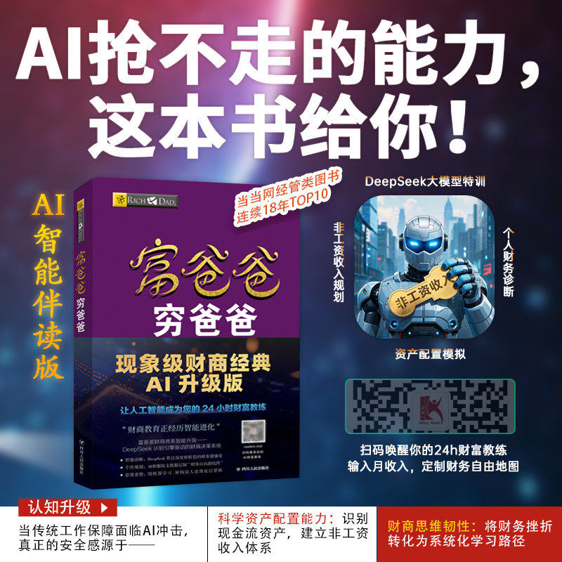 《穷爸爸富爸爸》全套5册正版书籍,由财商教育大师罗伯特·清崎倾心撰写,是风靡全球的理财启蒙经典。本书通过真实故事深入浅出地讲解财务知识,帮助普通人打破传统金钱观念,树立正确的财富思维。内容涵盖资产与负债、现金流、投资策略等核心理念,零基础也能轻松理解。书中强调“让钱为你工作”,引导读者从工薪阶层迈向财务自由。配套书课同步设计,理论与实践结合,适合各年龄层学习。无论你是理财小白,还是希望提升财商,这套书都能为你提供清晰路径,开启财富人生新篇章。正版保障,品质阅读,助你早日实现财务独立。