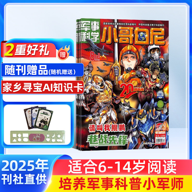 【送好礼】小哥白尼杂志军事科学画报是为6-15岁中小学生、青少年精心打造的军事科技期刊。从2026年1月起,订购一年将可获得共12期的杂志。每期杂志都以生动的卡通漫画绘本形式,介绍军事科学知识,让孩子们轻松学习。内容涵盖军事科技、科普知识等,旨在培养孩子们对军事科技的兴趣,提高他们的科普知识水平。这是一本不容错过的儿童科普期刊,适合喜欢军事科技的小朋友们订阅。