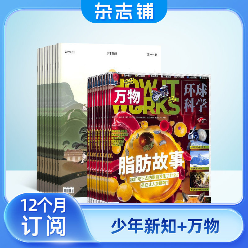 天猫少年新知+万物杂志组合 2026年1月起订 1年共24期 杂志铺全年订阅 青少年科普百科小学生思维启蒙艺术文学杂志书籍