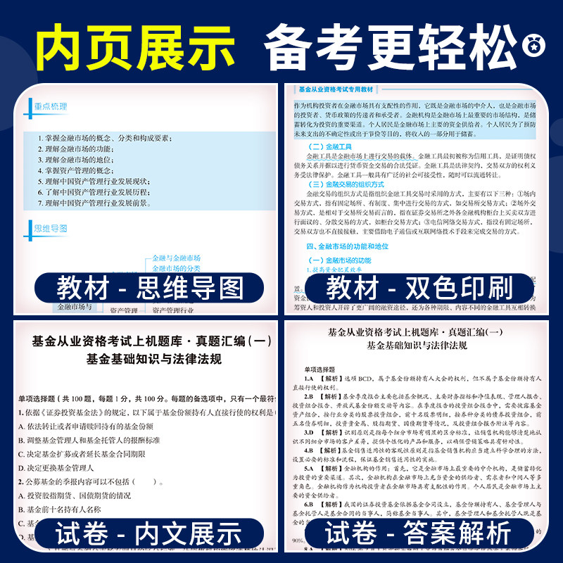 2026年版基金从业资格证书考试教材及真题资料由天明教育精心编撰,全面覆盖科目一《基金法律法规》、科目二《证券投资基础知识》和科目三《私募股权投资基金基础知识》。本套资料紧扣最新考试大纲,收录近25年历年真题,配备上机模拟题库,帮助考生熟悉无纸化考试环境。精选必刷题集,突出重点难点,强化实战训练,提升应试能力。内容权威、解析详尽,适用于零基础及冲刺复习考生。通过系统练习,考生可高效掌握核心知识点,顺利通过基金从业资格考试,为职业发展奠定坚实基础。天明教育助力考生一次通关,成就金融梦想。