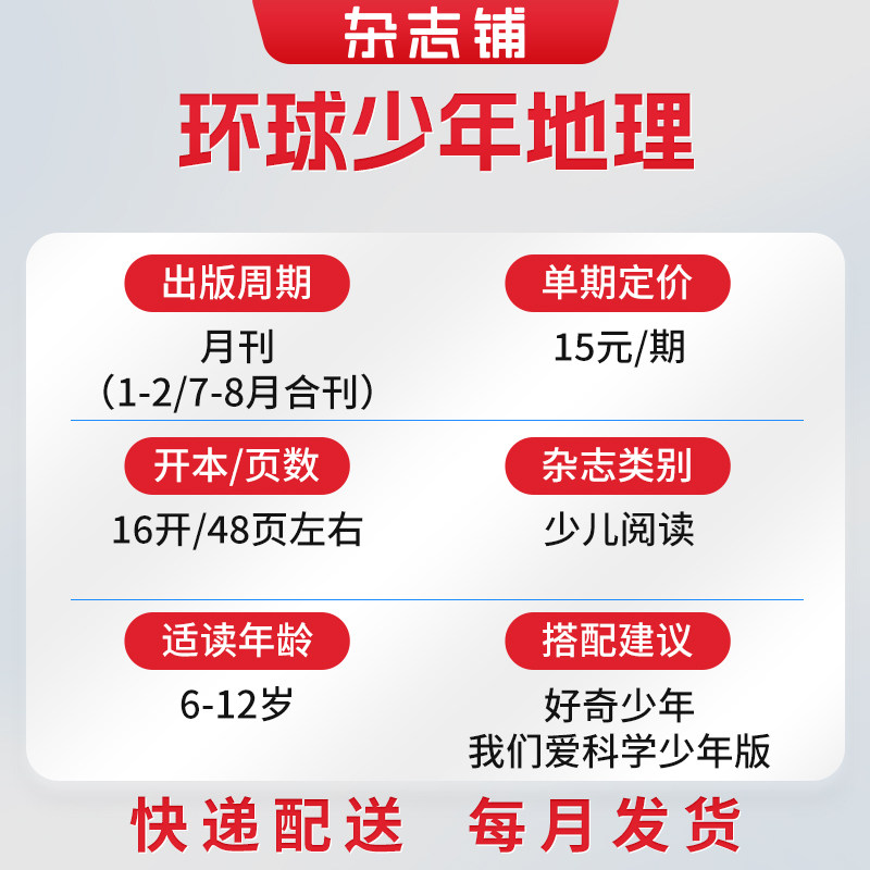 【送好礼】环球少年地理杂志订阅开始啦!从2026年1月起,一年共可享受到12期的精彩内容。这本杂志是面向6-12岁少年的科学杂志,由美国国家地理精心打造,为孩子们带来丰富有趣的科普探索体验。杂志内容丰富多样,有助于激发孩子们的阅读兴趣和好奇心,是课外兴趣阅读的最佳选择。订阅全年,让孩子们跟随环球少年地理杂志一起探索科学奥秘,增长知识见识,开拓视野!