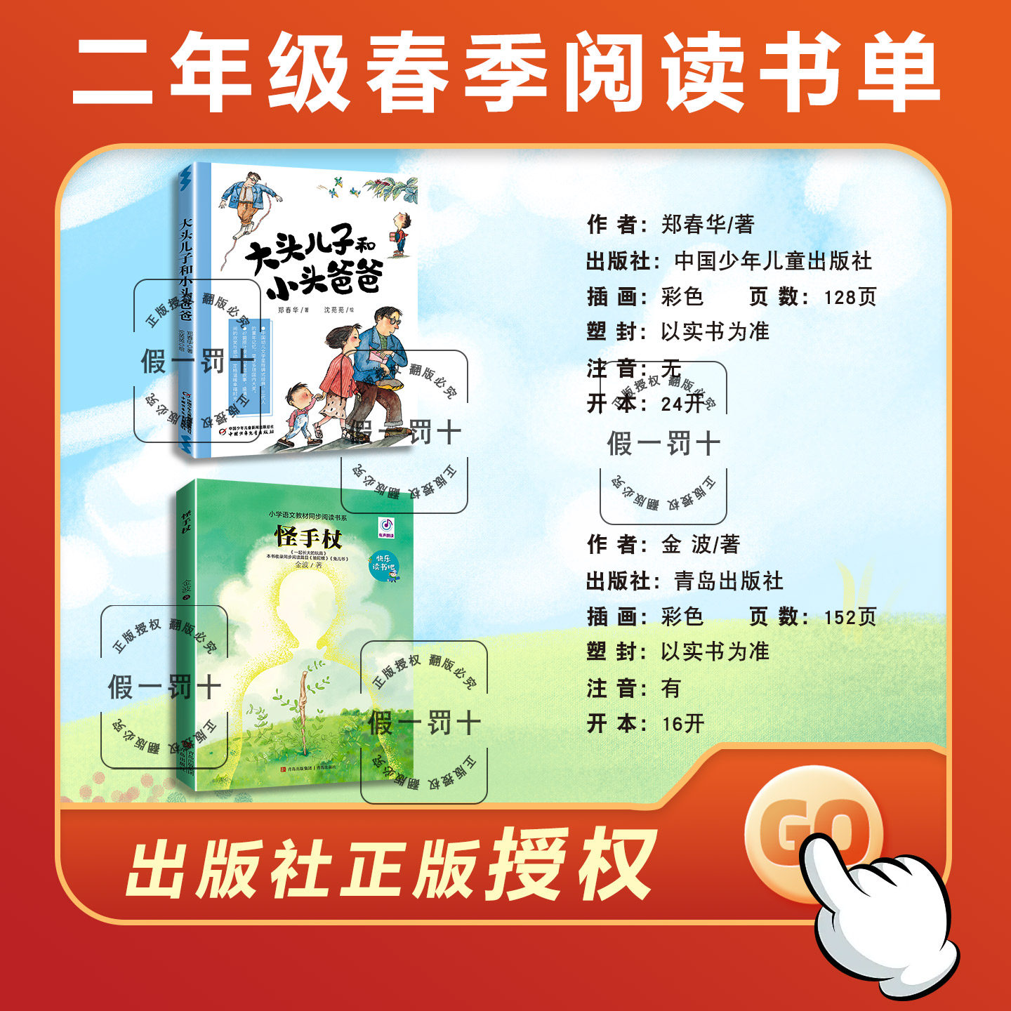 天猫整本书共读26春季二年级 怪手杖 小巴掌科学童话 贪吃的蜘蛛 大头儿子和小头爸爸 神笔马良 二年级课外阅读书目 全套六本阅读书籍