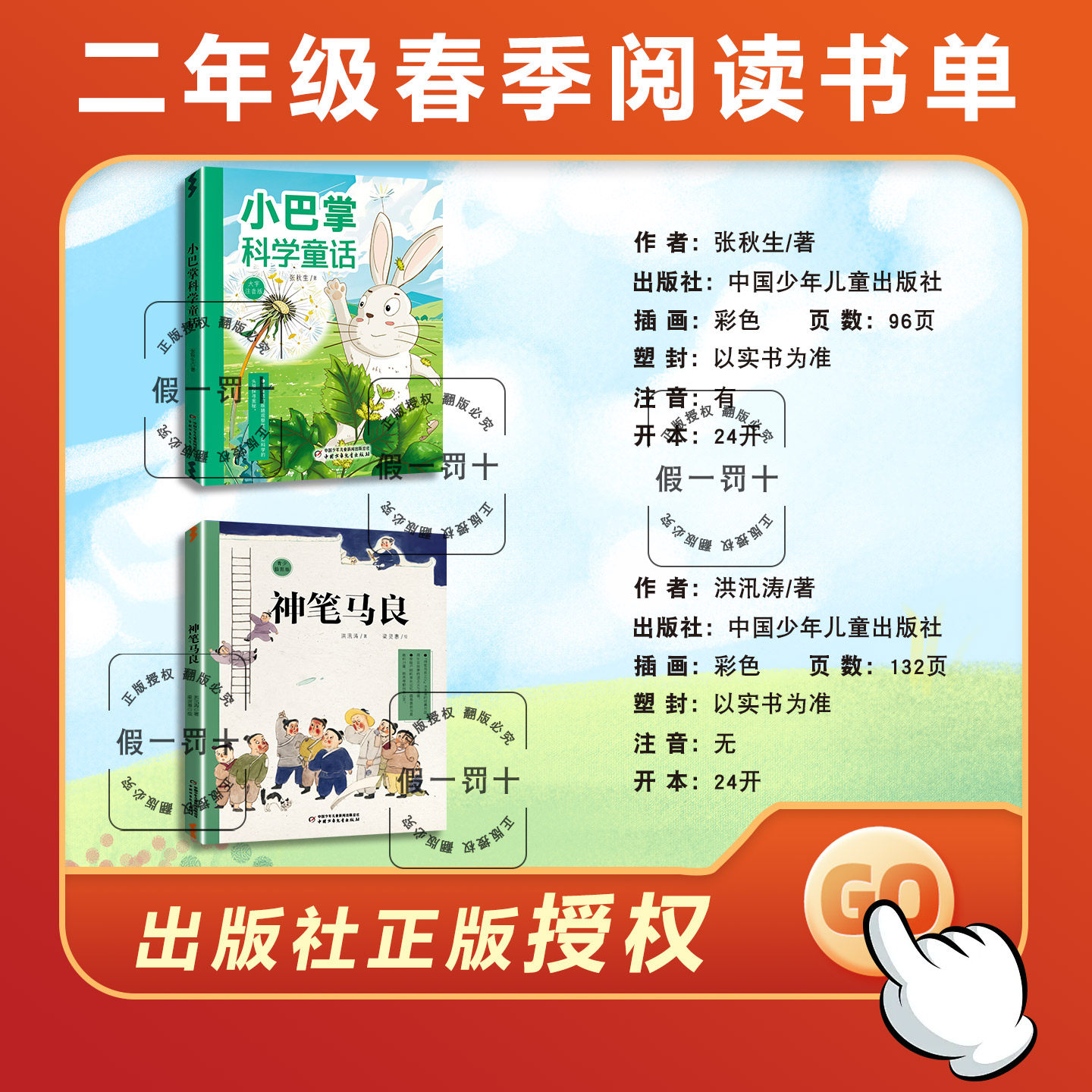 《二年级课外阅读书目全套六本》是一套专为小学二年级学生精心编排的优质读物,包含《小巴掌科学童话》《贪吃的蜘蛛》《大头儿子和小头爸爸》《神笔马良》等六本经典作品。这些故事语言生动、情节有趣,兼具趣味性与教育意义,旨在激发孩子的阅读兴趣,培养想象力与科学思维。其中,《小巴掌科学童话》融合科学知识与童话想象;《贪吃的蜘蛛》讲述自然生态中的小故事;《大头儿子和小头爸爸》展现温馨家庭生活;《神笔马良》传承中华优秀传统文化。整套书图文并茂,适合春季学期整本书阅读,帮助孩子在轻松愉快的阅读中提升语文素养,养成良好阅读习惯。