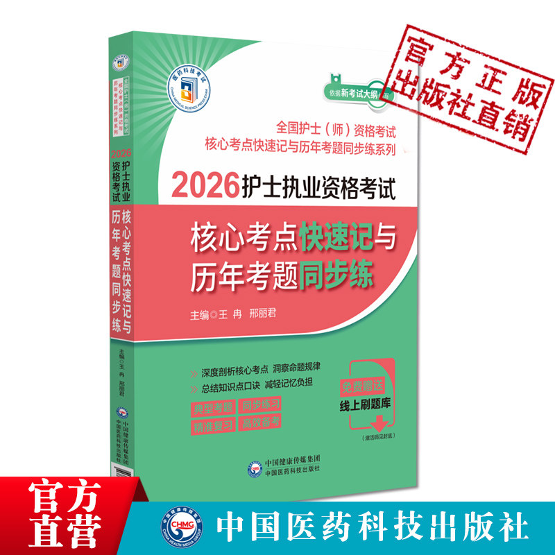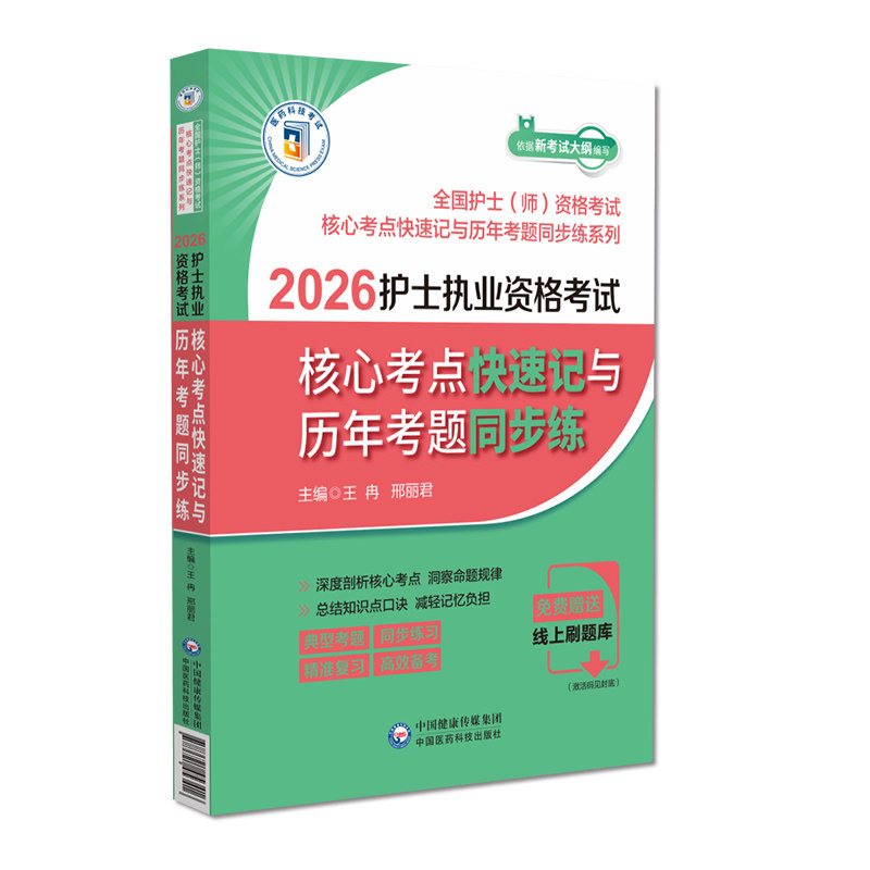 《2026年护士执业资格考试核心考点快速记与历年考题同步练》专为备考护士执业资格考试的考生精心编写。本书紧扣最新考试大纲,系统梳理核心考点,采用简明口诀、图表归纳等方式助力高效记忆。同时精选近十年历年真题,按章节分类编排,实现“学考点、练真题”同步进行,强化理解与应试能力。配套习题库覆盖全面,题型贴近实战,配有详细解析,帮助考生查漏补缺、巩固提升。无论是基础复习还是冲刺备考,本书都是掌握重点、突破难点的理想之选,助力考生高效通关,顺利取得护士执业资格证书。